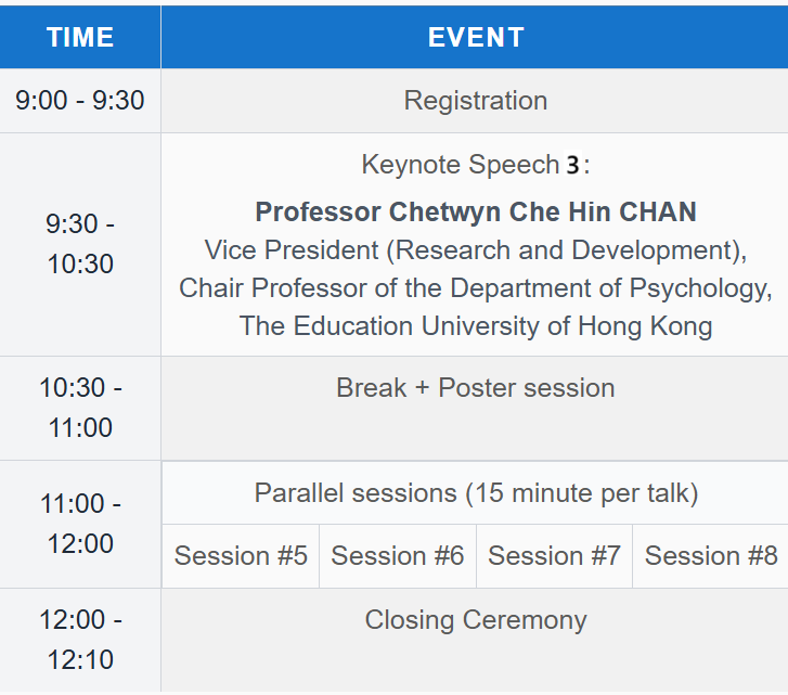 Day 2: 9:00am – 12:10pm (Hong Kong Time (GMT+8))